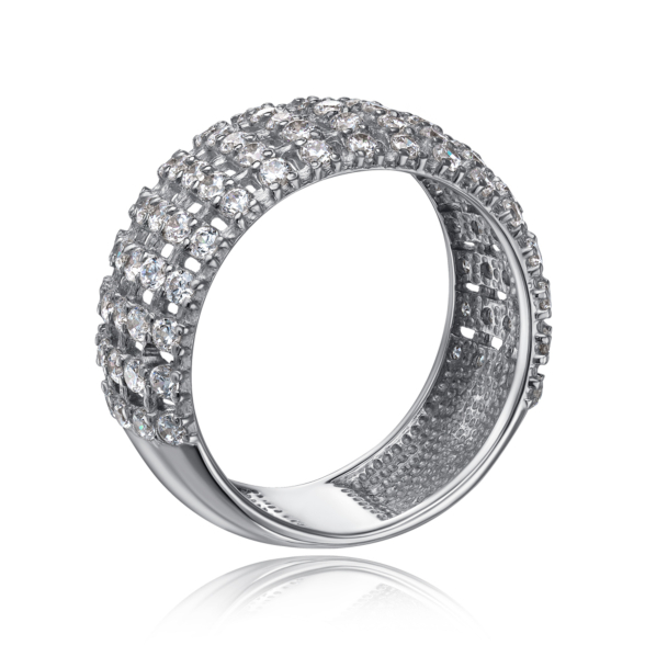 Эффектное кольцо из белого золота 585 пробы покоряет с первого взгляда современным дизайном и оригинальностью исполнения. Верхняя часть ободка украшения декорирована небольшими фианитами, уложенными в пять дорожек и чередующихся с открытым пространством золотых линий. Стильное золотое кольцо станет неповторимой изюминкой вашего образа и непременно привлечет восторженные взгляды друзей и коллег.
