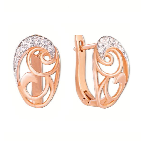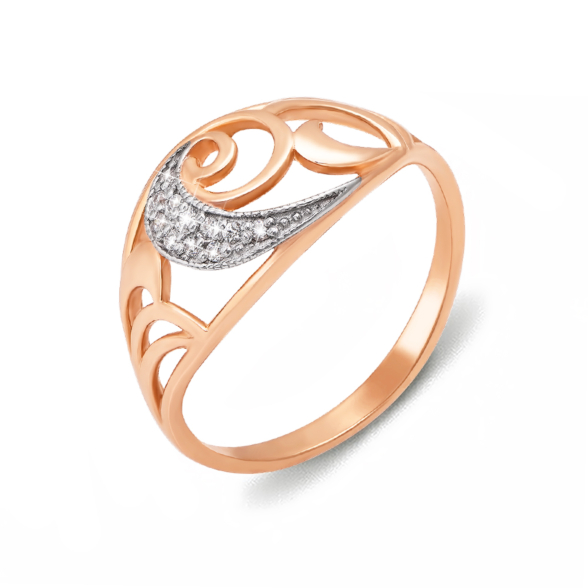 Кольцо из красного золота и золота в белом с фианитами в комплекте с серьгами не оставит равнодушными женщин с отменным вкусом.
