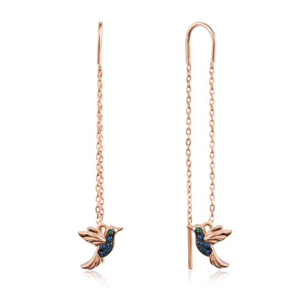 Золотые серьги-протяжки «Колибри» с фианитами. Артикул 21964/01/1/1842