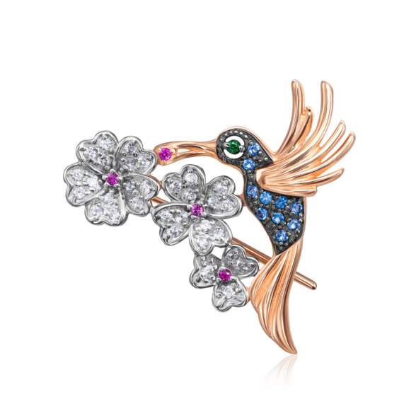 Обычная цена 18 719 грн Специальная цена 10 670 грн Золотая брошь «Колибри» с фианитами. Артикул 4127/01/1/1819