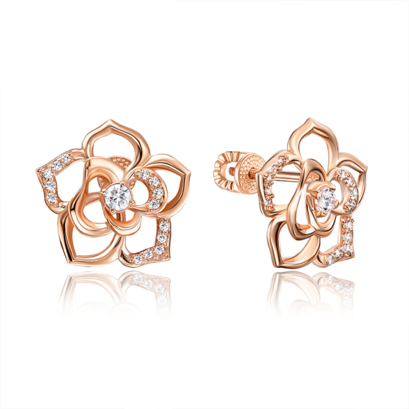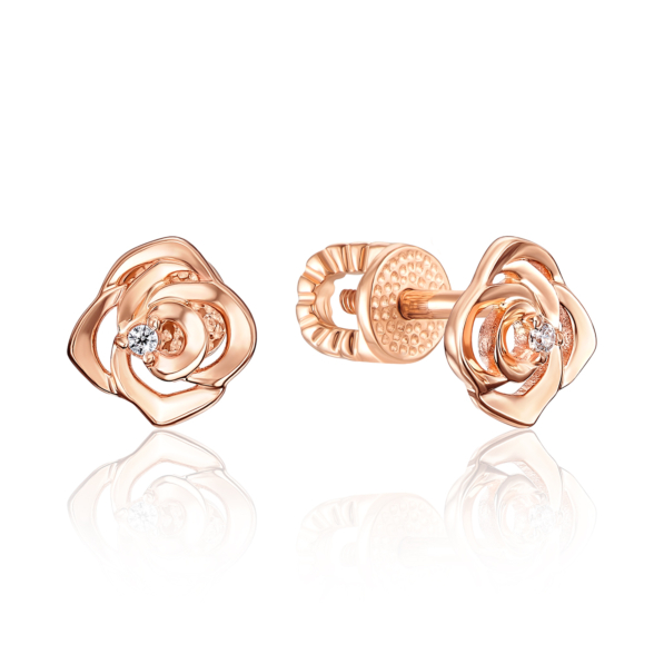 Золотые пуссеты «Роза» с фианитами. Артикул 22024/01/0/1