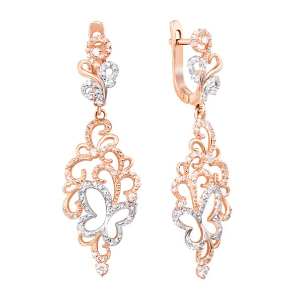 Золотые серьги-подвески с фианитами (21823/01/1/913)
