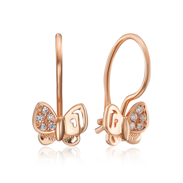 Обычная цена 12 006 грн Специальная цена 6 843 грн Золотые серьги «Бабочки» с фианитами. Артикул 21473