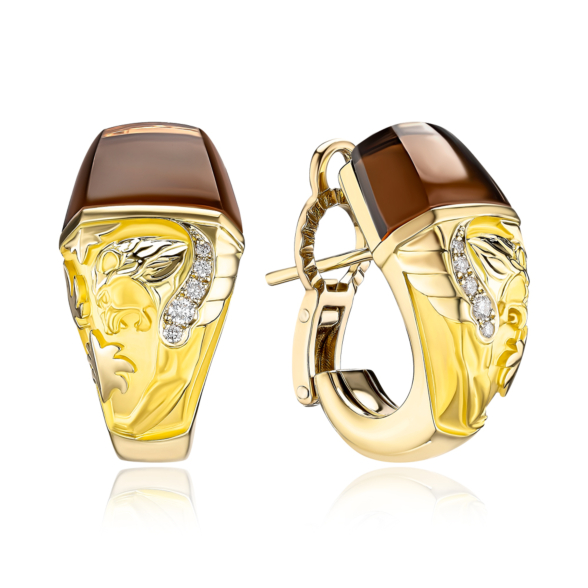 Обычная цена 148 669 грн Специальная цена 96 635 грн Золотые серьги Magerit c кварцем и бриллиантами. Артикул 1641.7/05/0/11970