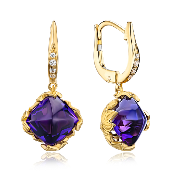 Обычная цена 172 726 грн Специальная цена 112 272 грн Золотые серьги Magerit с аметистом и бриллиантами. Артикул 2105.1/05/0/11957