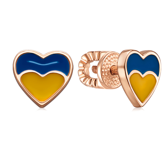 Золотые пуссеты «Флаг Украины» с эмалью. Артикул 21580/01/0/1158
