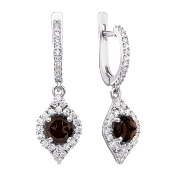 Серебряная подвеска с дымчатым кварцем и фианитами. Артикул 3674р