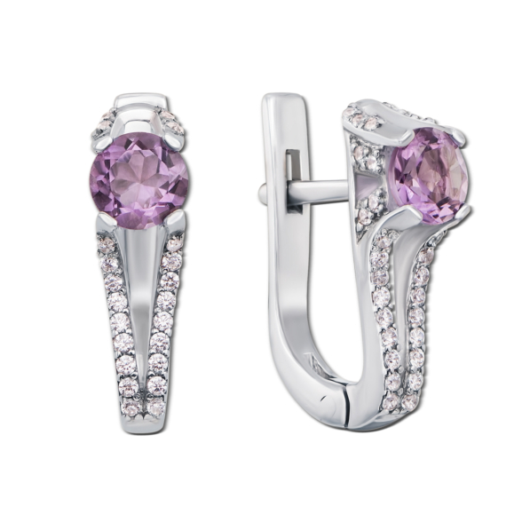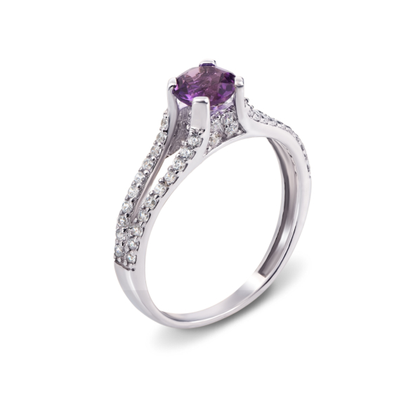 Кольцо из серебра 925 пробы с аметистом и фианитами