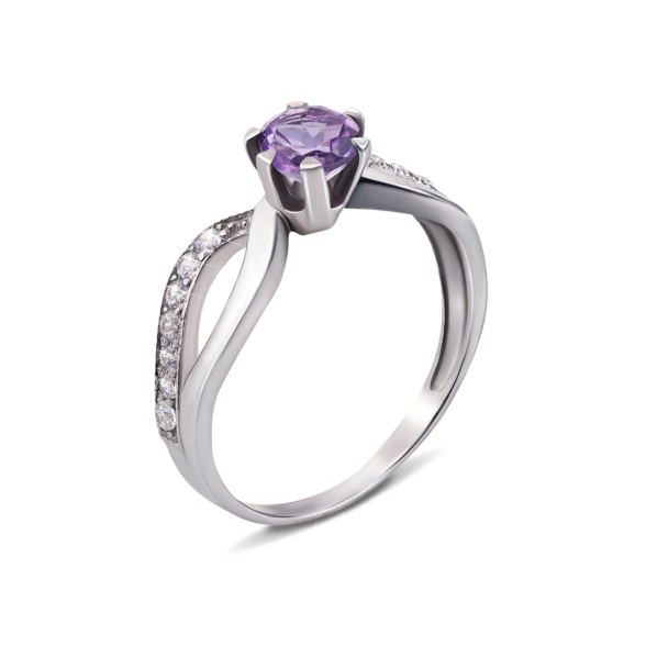 Серебряное кольцо с аметистом и фианитами. Артикул 1667/9р