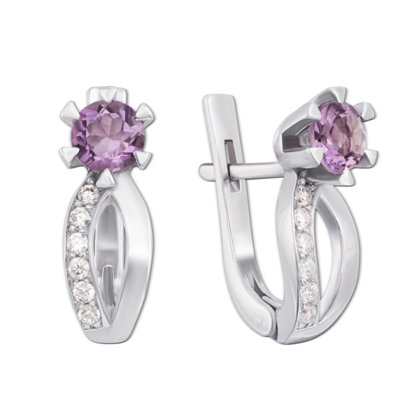 Кольцо из серебра 925 пробы с аметистом и фианитами
