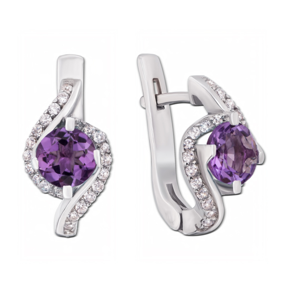 Серебряное кольцо с аметистом и фианитами. Артикул 1668/9р
