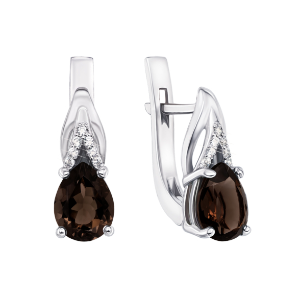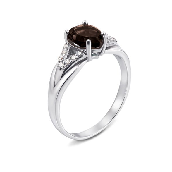 Серебряное кольцо с дымчатым кварцем и фианитами. Артикул 1937/9р