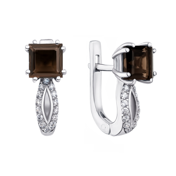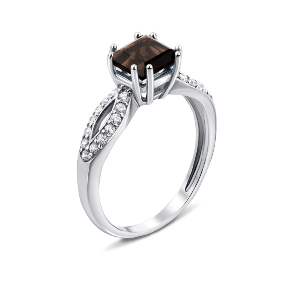 Серебряное кольцо с дымчатым кварцем и фианитами. Артикул 1979/9р