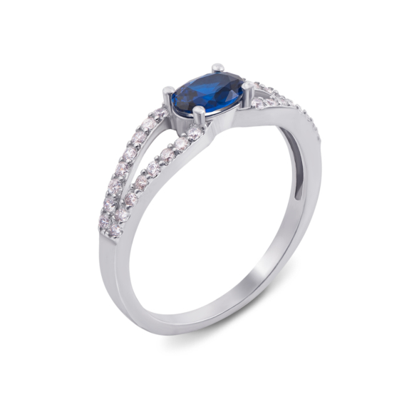 Серебряное кольцо с гидротермальным сапфиром и фианитами. Артикул 1625/9р