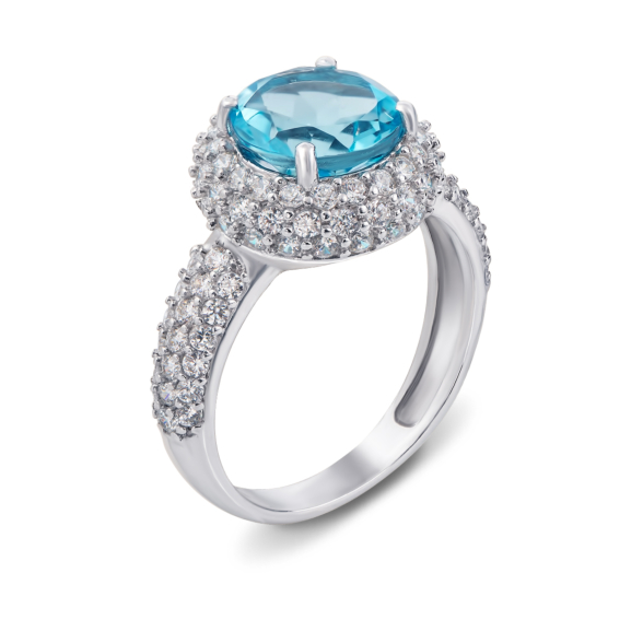 Серебряное кольцо с голубым кварцем и фианитами. Артикул 1583/9р
