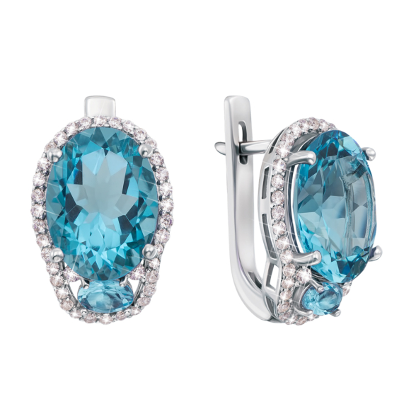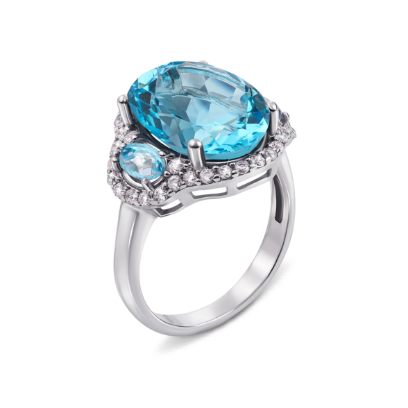 Серебряное кольцо с голубым кварцем и фианитами. Артикул 1628/9р