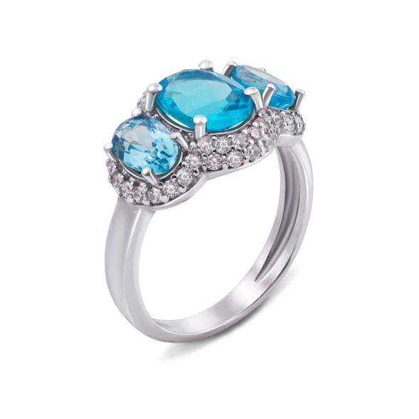 Серебряное кольцо с голубым кварцем и фианитами. Артикул 1658/9р