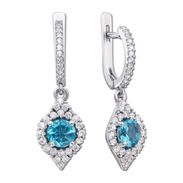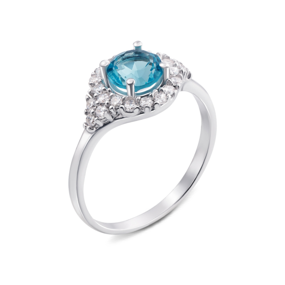 Серебряное кольцо с голубым кварцем и фианитами. Артикул 1677/9р