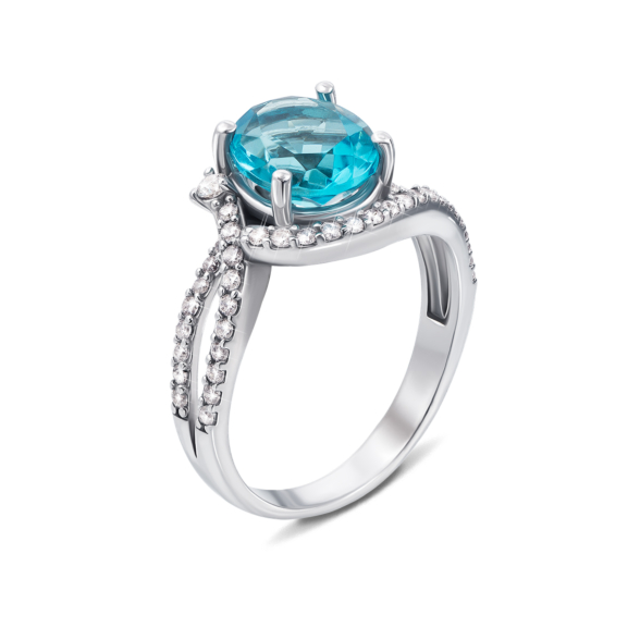 Серебряное кольцо с голубым кварцем и фианитами. Артикул 1746/9р
