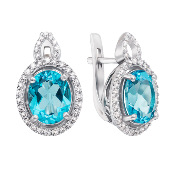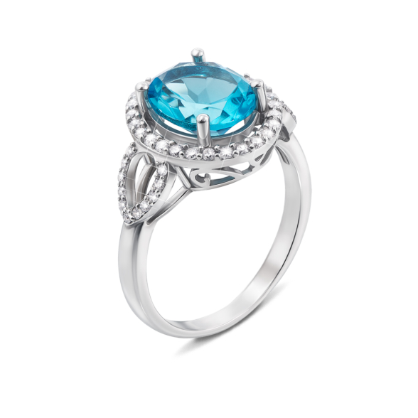 Серебряное кольцо с голубым кварцем и фианитами. Артикул 1747/9р