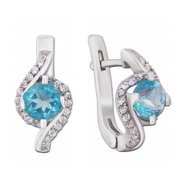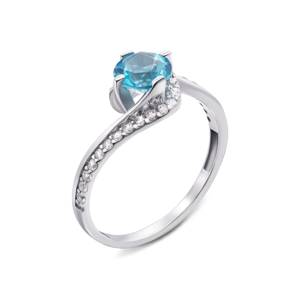 Серебряное кольцо с голубым топазом и фианитами. Артикул 1668/9р