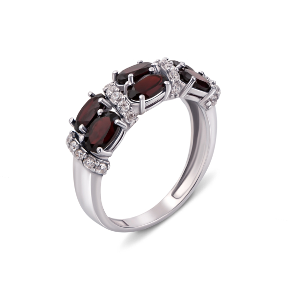 Кольцо из серебра 925 пробы с гранатом и фианитами
