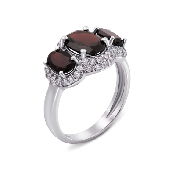 Серебряное кольцо с гранатом и фианитами. Артикул 1658/9р