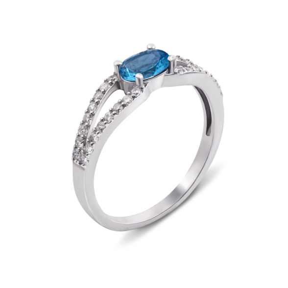Серебряное кольцо с лондон-топазом и фианитами. Артикул 1625/9р