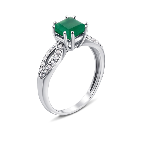 Серебряное кольцо с зеленым агатом и фианитами. Артикул 1979/9р