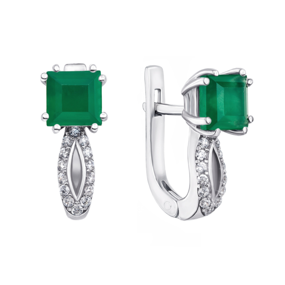 Кольцо из серебра 925 пробы с зеленым агатом и фианитами