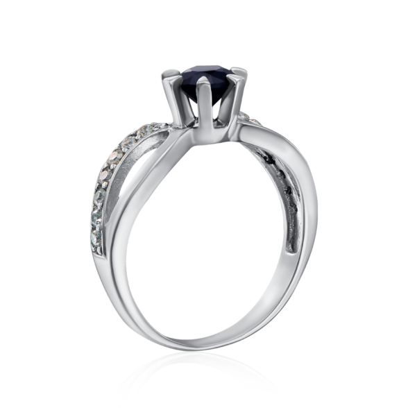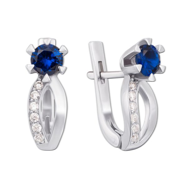 Серебряные серьги с гидротермальным сапфиром и фианитами. Артикул 2164/9р