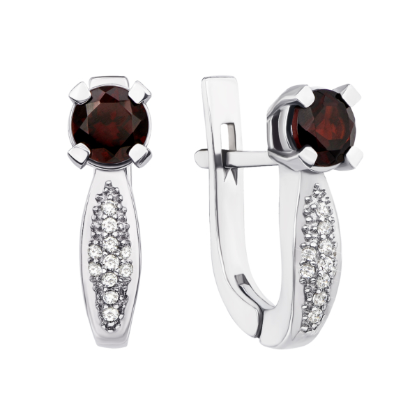 Серьги из серебра 925 пробы с гранатом и фианитами