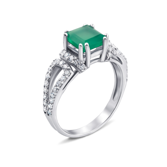 Серебряные серьги с зеленым агатом и фианитами Артикул 2532/9р