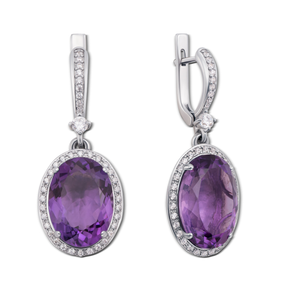 Серебряная подвеска с аметистом и фианитами. Артикул 3681р-AMT