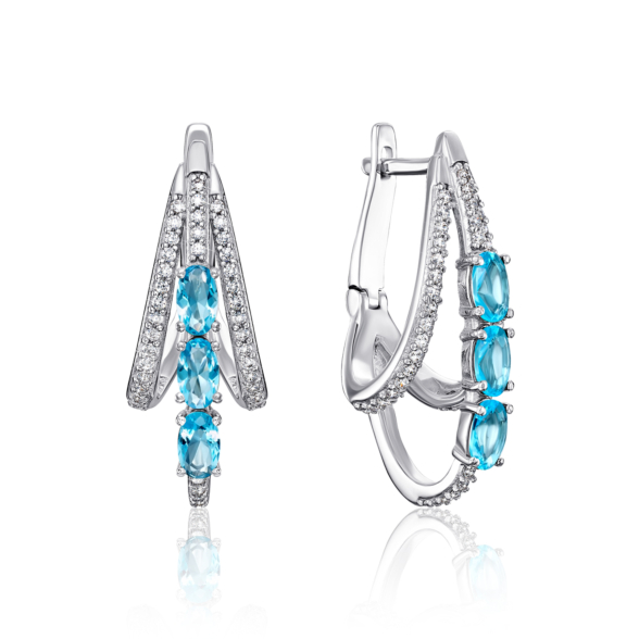 Подвеска из серебра 925 пробы с голубым кварцем и фианитами.