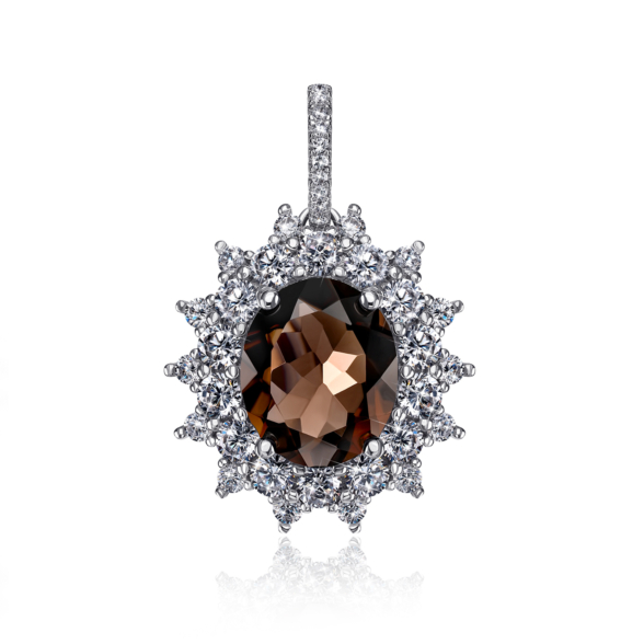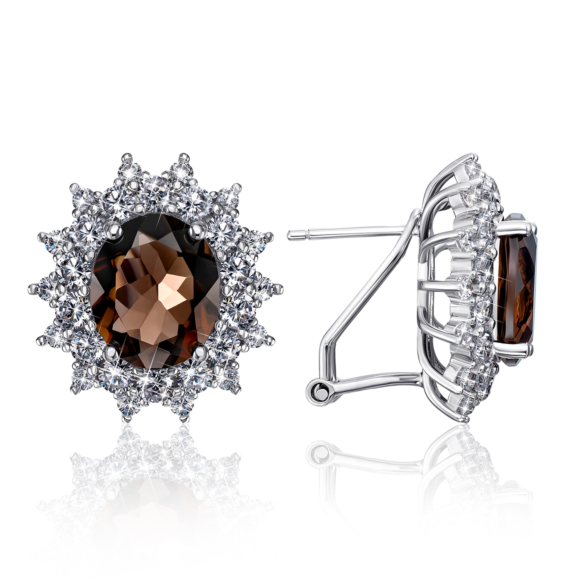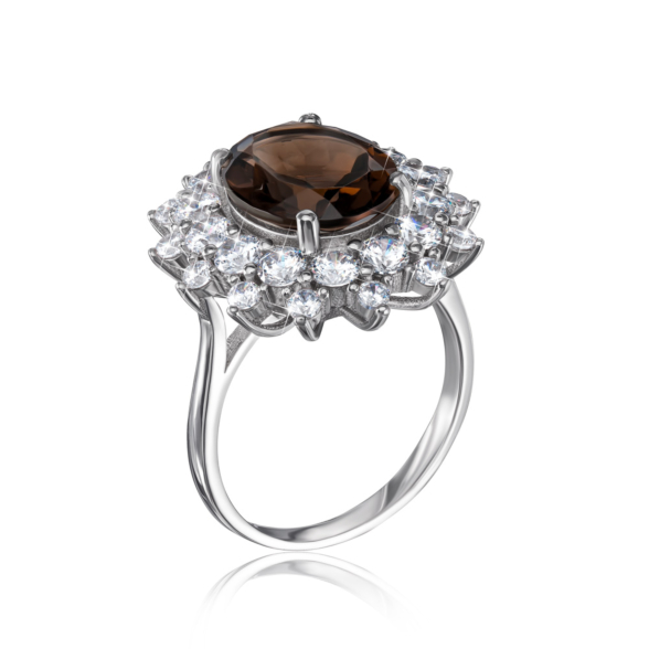 Кольцо из серебра 925 пробы с дымчатым кварцем (раухтопазом) и фианитами.