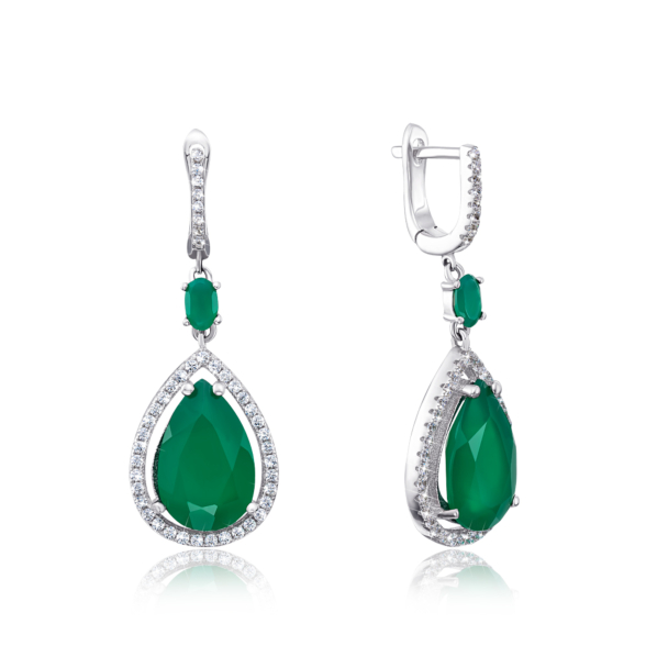 Кольцо из серебра 925 пробы с агатом и фианитами.