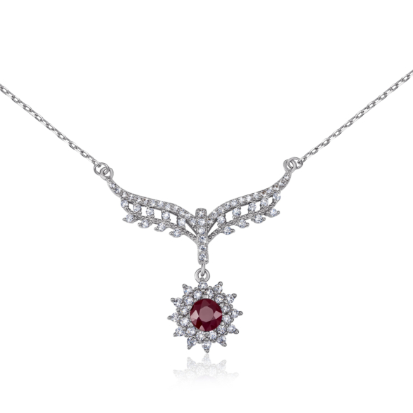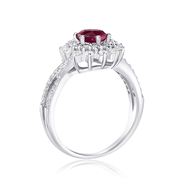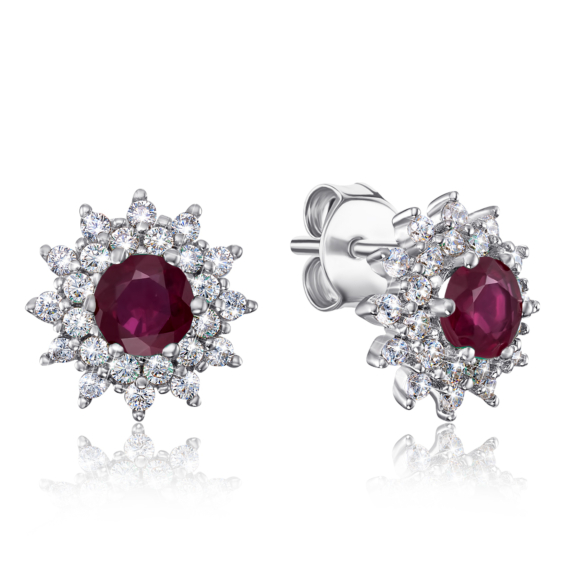 Серебряные пуссеты с рубином и фианитами. Артикул NA687-E/12/8820