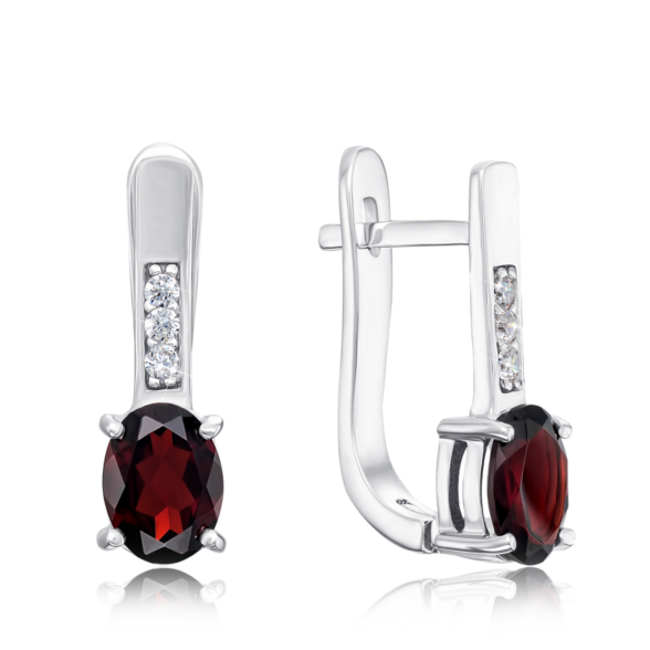 Серьги из серебра 925 пробы с красным гранатом (пироп) и фианитами.