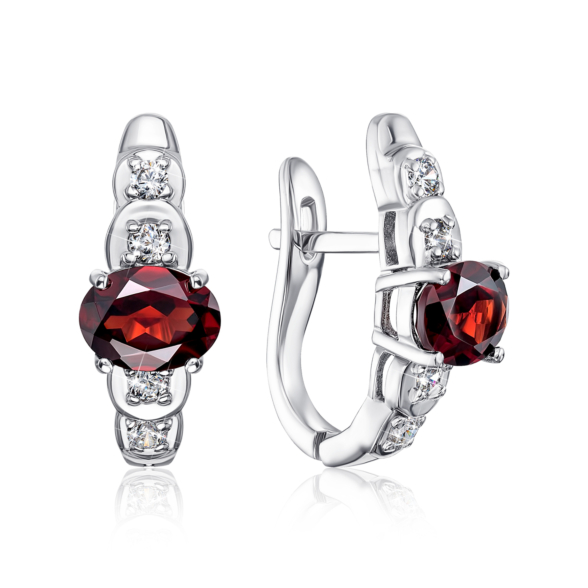 Серебряные серьги с гранатом и фианитами. Артикул GRE2125-E/12/5050