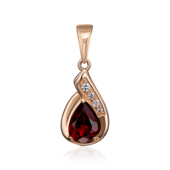 Подвеска из красного золота 585 пробы с гранатом и фианитами