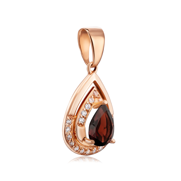 Золотая подвеска с гранатом и фианитами. Артикул 550029/гр кс