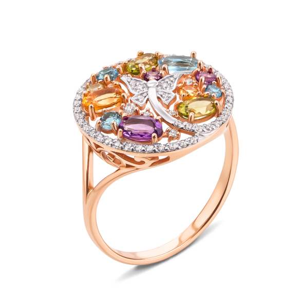 Подвеска из красного золота 585 пробы с хризолитами, аметистами, цитринами, топазами swiss и фианитами