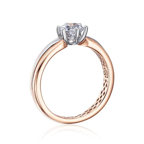 Золотое кольцо из комбинированного золота 585 пробы с фианитами европейского высшего качества.