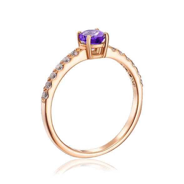 Кольцо из красного золота 585 пробы с аметистом и фианитами