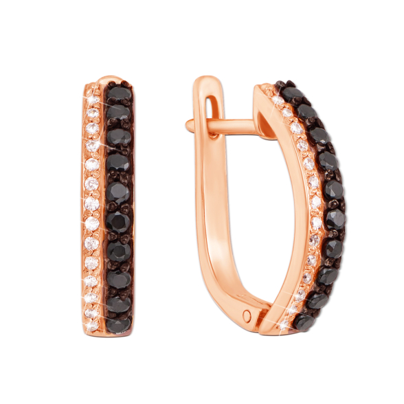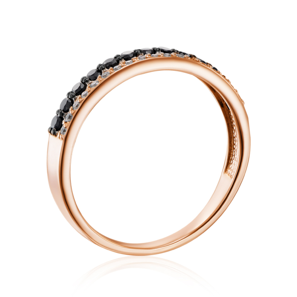 Кольцо из красного золота 585 пробы с черными и белыми фианитами
