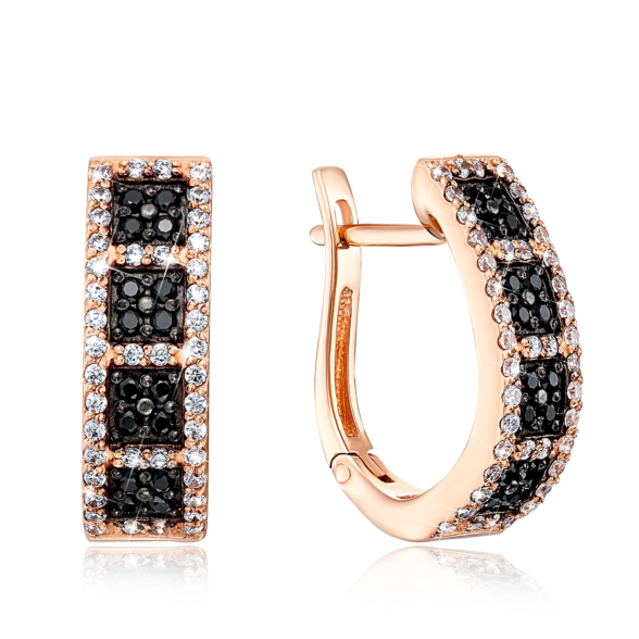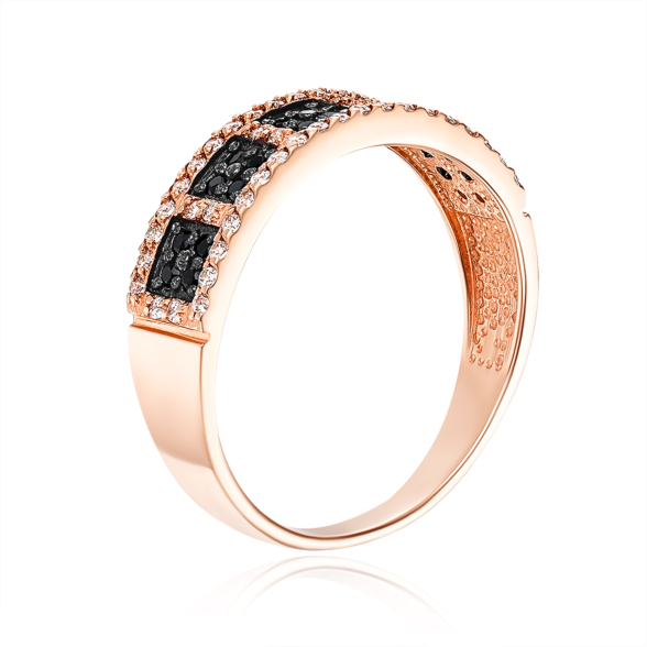Кольцо из красного золота 585 пробы с белыми и черными фианитами
