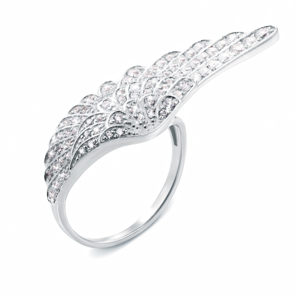 Кольцо из белого золота 585 пробы с фианитами станет оригинальным дополнением к вашему образу. Золотое кольцо с декоративной частью в форме крыла не оставит равнодушной ни одну представительницу прекрасного пола, а преподнесенное в подарок надолго сохранит воспоминания о дарителе этого замечательного украшения.