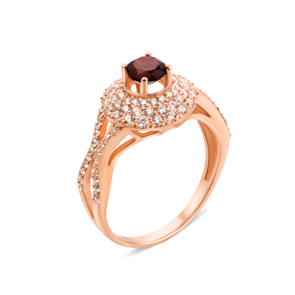 Кольцо из красного золота 585 пробы с гранатом и фианитами