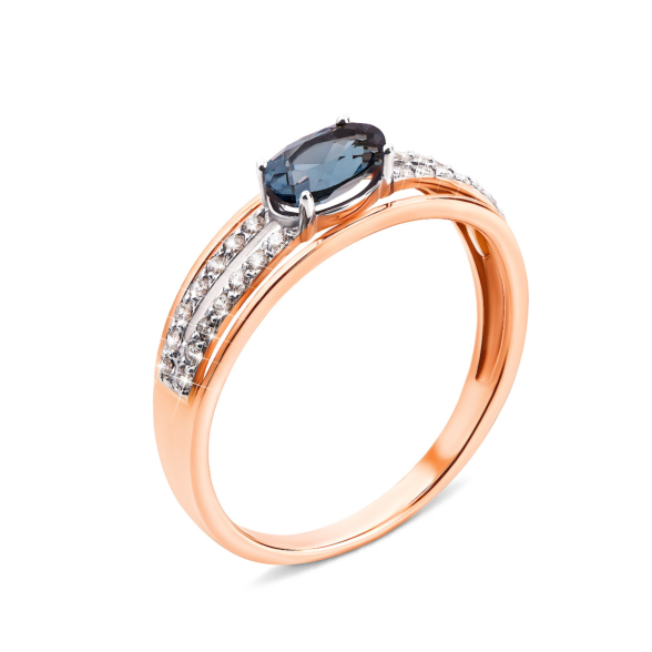 Кольцо из красного золота 585 пробы с лондон-топазом и фианитами